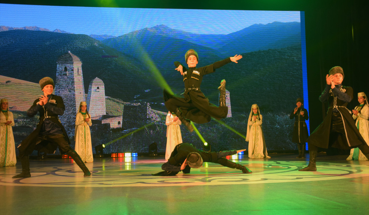 Үлкендерге құрмет көрсетуді әсте естен шығармайтын ұжым көрермендер назарына «Нана лаьтта — Мать земля» атты биді ұсынды. Ал келесі бір сәтте өнер ұжымы лезгинканы сәтті орындап шықты.