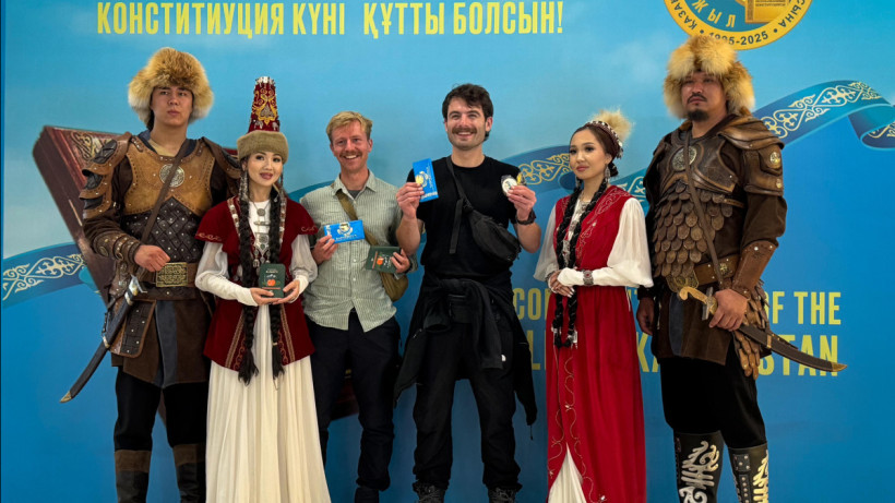 Әуежай терминалында Конституция күніне арналған мерекелік фотоаймақ жұмыс істейді. Әрбір қонақ дәстүрлі қазақ шапанын киіп, естелікке суретке түсе алады.