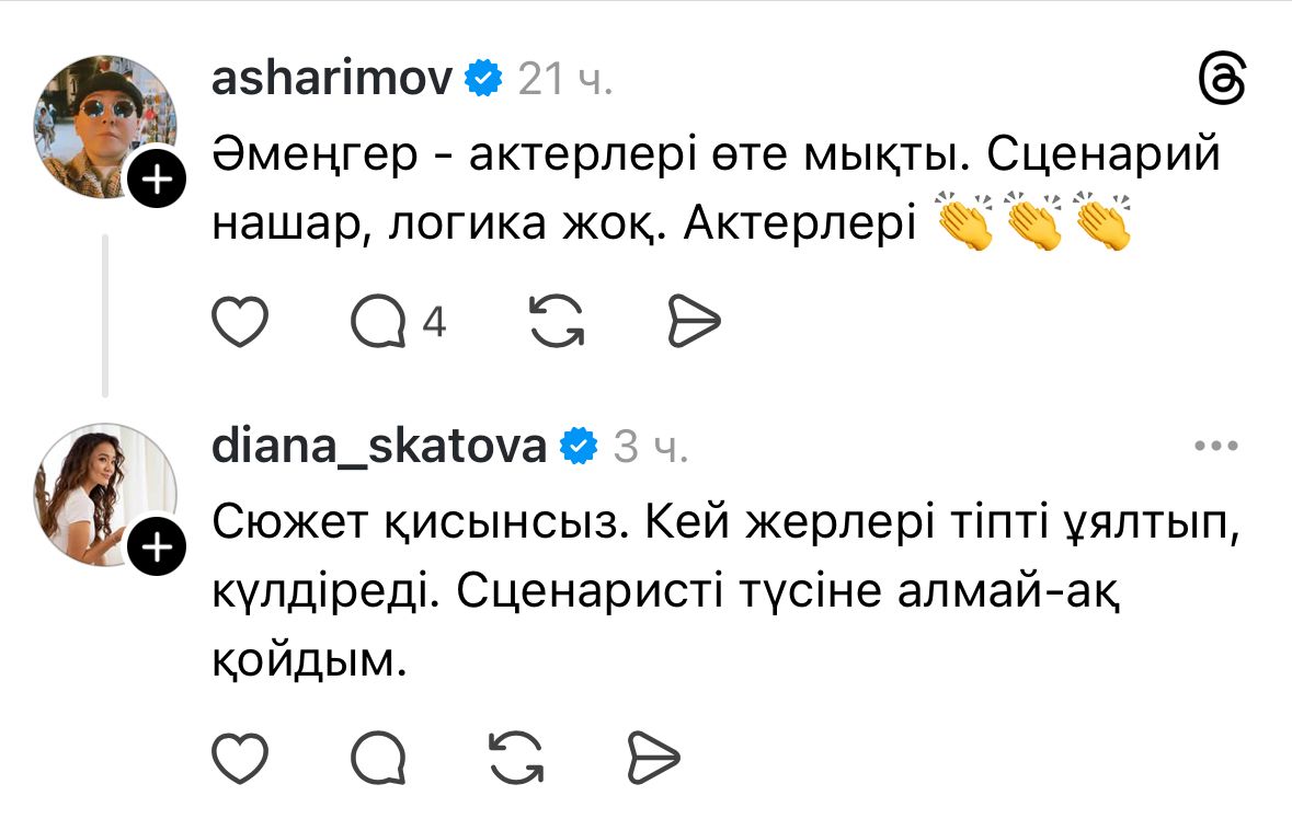 Threads желісіндегі пікірлерге көз жүгіртсек, сценарийдің мазмұнына қатысты көп сын айтылған.