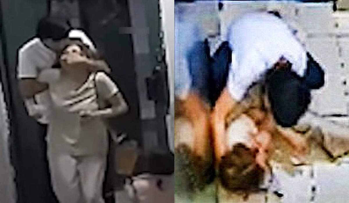 Оның бұл ерсі әрекеті көпқабатты үйдің дәлізінде орнатылған камераға түсіп қалған. Кадрлардан ер адам әйелдің қолын бұрап, аузын жауып тұрғанын көруге болады. Осыдан кейін бұл ісін ешкім көріп тұрмағанына көз жеткізу үшін айналасына қарайды.