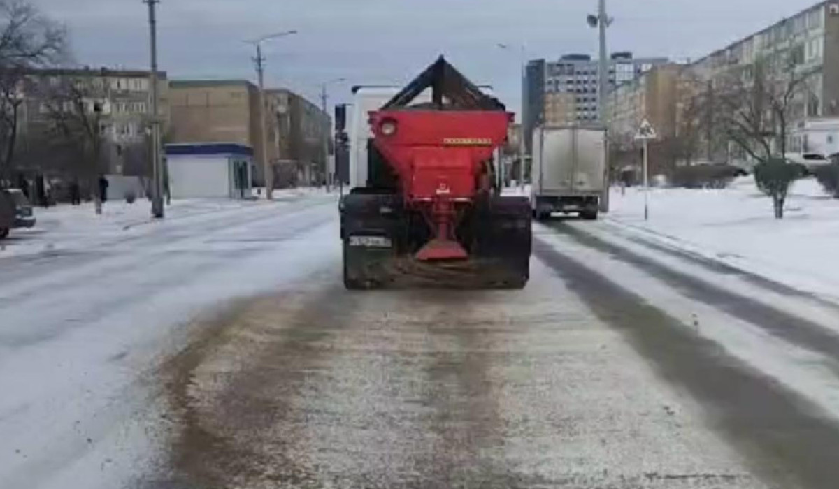 Ақтауда жолдарға 14,70 тонна тұз аралас қоспасы шашылды