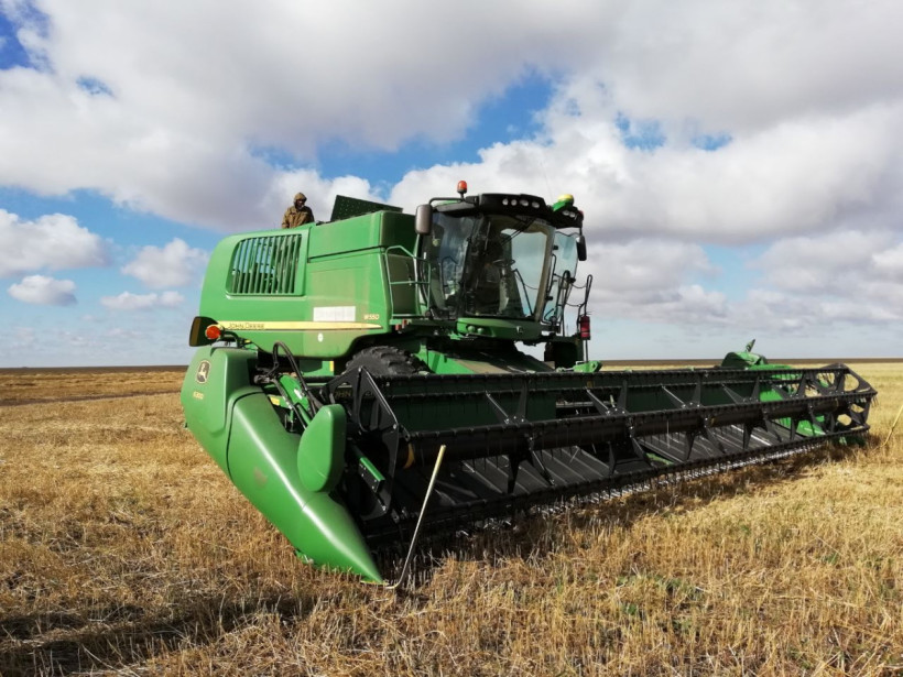 Егістікте өз елімізде, яғни, Қостанай қаласында құрастырылған 3 VECTOR комбайыны, John Deer Америка машина құрастыру компаниясының 1 комбайыны, немістің Fendt және Claas комбайндары бір-бірден жүр. John Deer комбайыны бір өткен кезде ені 9 метр жерді шауып өте алады. Қалған комбайндар 7 метрлік жадкамен қамтамасыз етілген.