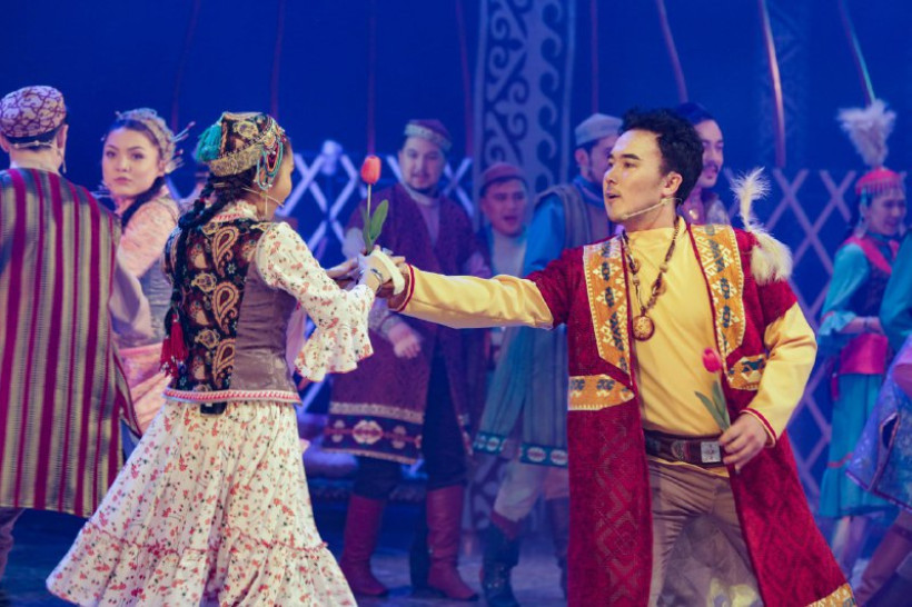 Шымылдық ашылып, қойылым Айман мен Шолпан бастаған қыздардың биінен басталады. Көрерменді бірден баулап, көзін қуантқан мың бұралған қыздардың әдемі биі ғана емес, көздің жауын алатын келісті образдар, ұлттық нақыштағы киім-кешек, сахна декорациясы дер едім.