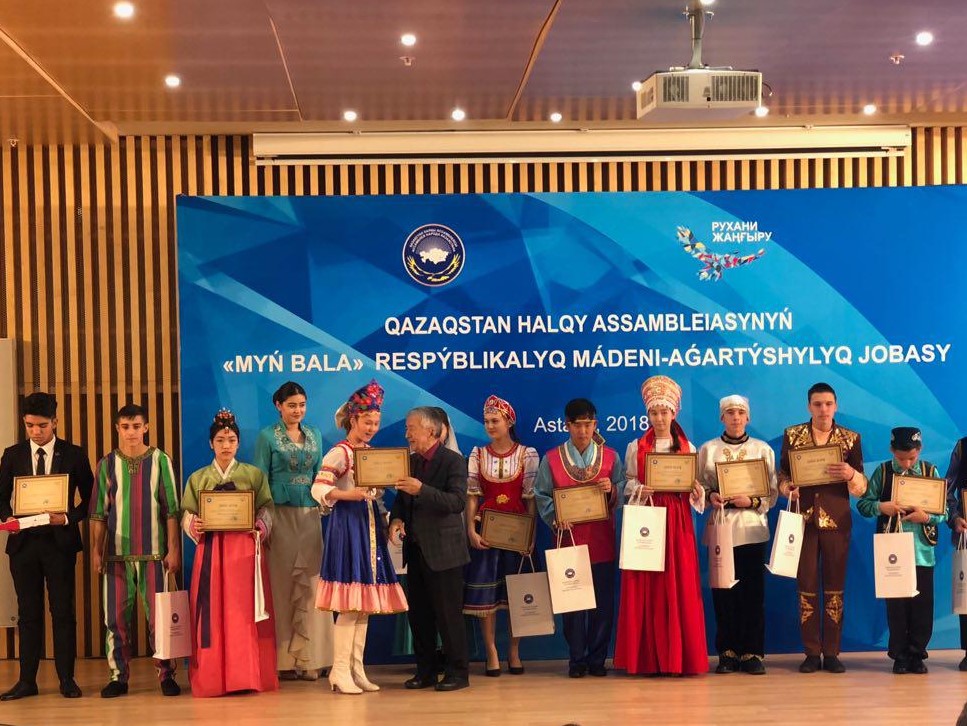«QAZAQSTAN» Орталық Концерт залында Қазақстан халқы Ассамблеясының жыл сайынғы «Мың бала» республикалық мәдени-ағартушылық жобасының жеңімпаздарын салтанатты түрде марапаттау рәсімі өтуде.