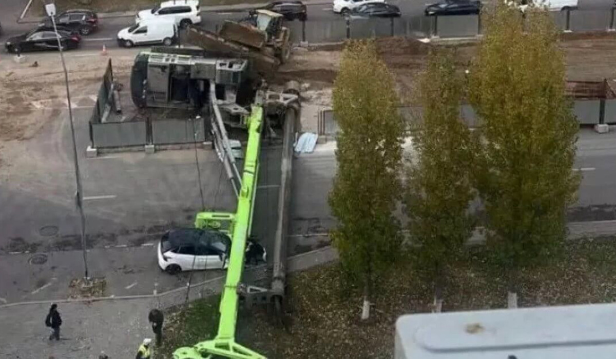 Астанада салынып жатқан LRT маңында ауыр техника көліктің үстіне құлады