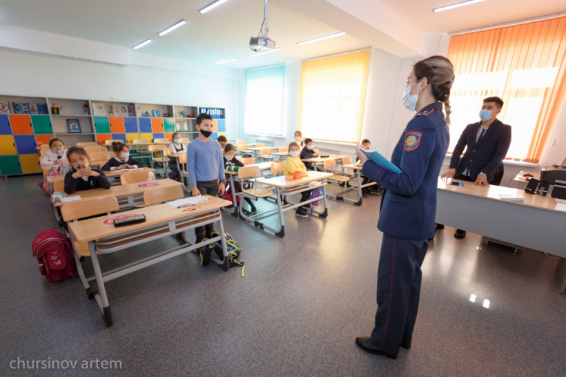 — Менің жұмысым таңғы сағат 08.00-де мектепке келуден басталады. Елімізде болып жатқан пандемияға байланысты қазіргі уақытта кезекші сыныптар ғана мектеп қабырғасында білім алуда. Осыған байланысты кезекші 1-4 сынып оқушыларын мектеп әкімшілігінің қызметкерлерімен бірге қарсы аламын. Мектеп аумағын тексеріп болғаннан кейін, күнделікті жұмыс жоспарына сай кезекші сыныптарға дәрістер жүргізе бастаймын. Көбінесе «Жол жүру ережелерін» түсіндіру, мысал келтіре отырып оқушыларға профилактикалық жұмыстар жүргіземін. Түстен кейін, бейнеконференция арқылы онлайн түрде білім алып жатқан 5-11 сынып оқушыларына жоспарға сәйкес ҚР әкімшілік және қылмыстық кодекстарының баптарымен таныстыру, талдау, мысал келтіру жұмыстарын өткіземін. Ата-аналар жиындары да қазіргі уақытта онлайн түрде өтуде. Сонымен қатар, санитарлық-эпидемиологиялық мекемесінің мамандарымен, Нұр-Сұлтан қалалық «Наркология және психиотрия» мамандарымен 8-11 сынып оқушыларына тақырыпқа сай дәрістер өткізіліп тұрады. Жұмыс уақытым сағат кешкі 19.00 шамасында аяқталады.