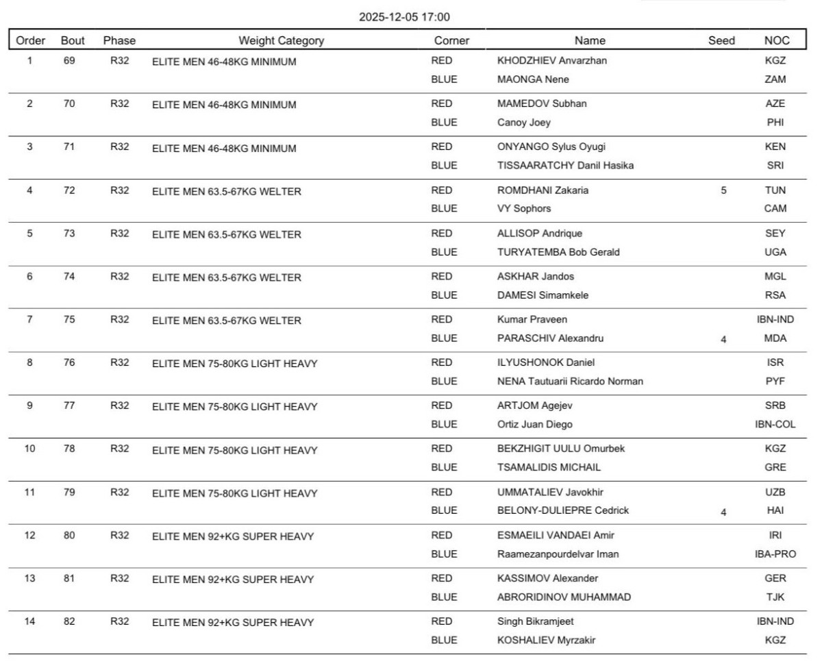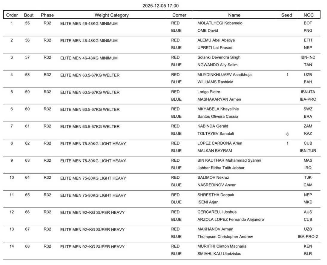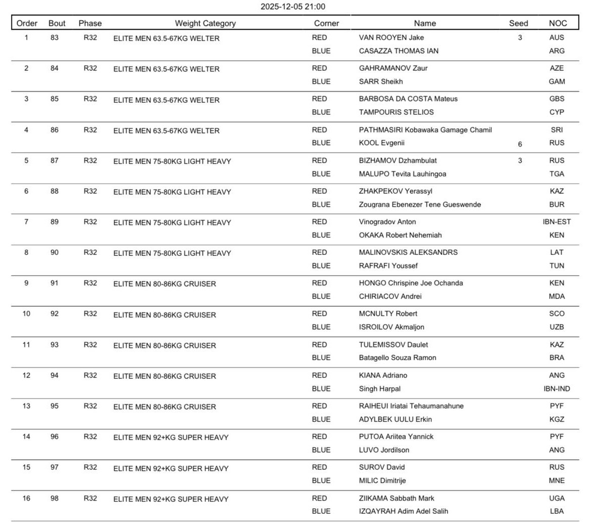 Бокстан әлем чемпионаты: 5 желтоқсанға арналған жарыс кестесі