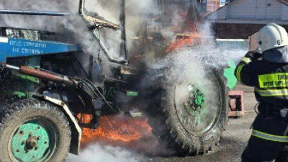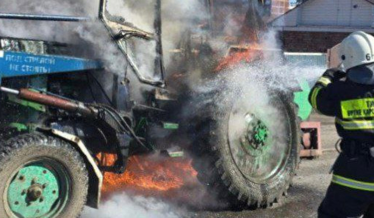 Екібастұзда жолда жүріп бара жатқан трактор өртеніп кетті