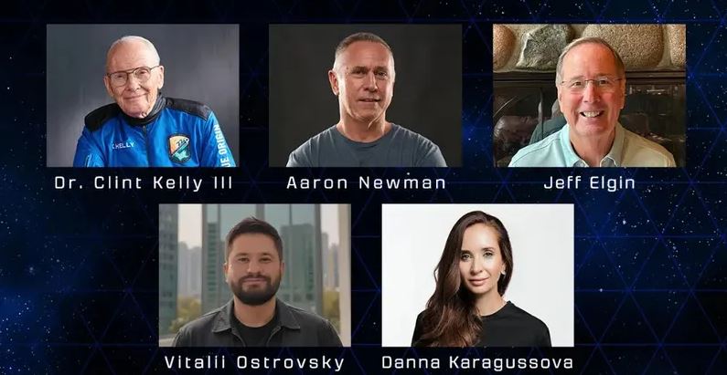Данна Қарағұсовамен бірге ғарышқа кәсіпкер Джефф Элгин, инженер Клинт Келли III, стартаптар негізін қалаушы Аарон Ньюман, украиналық бизнесмен Виталий Островский және есімін құпия сақтауды жөн көрген тағы бір жолаушы аттанады.