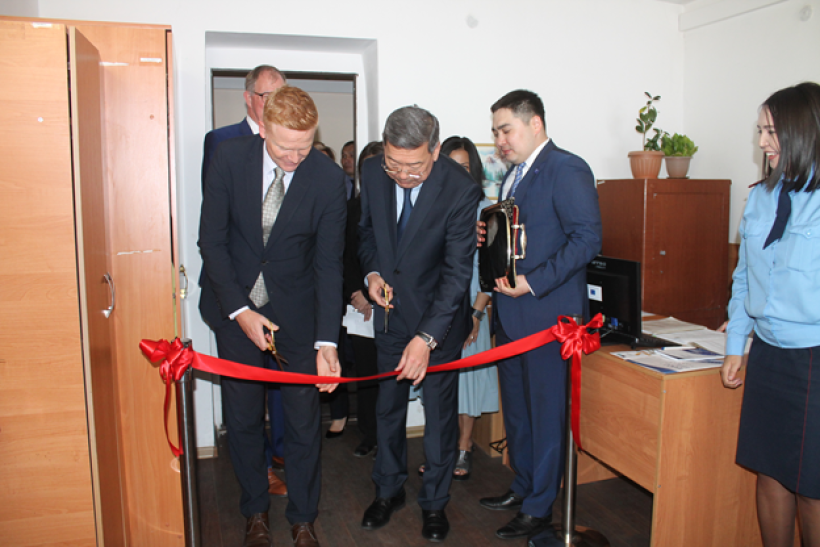 Компьютерлік техниканың таныстырылымында қызыл лентаны кесу рәсімі ҚР IIM Қылмыстық-атқару Комитетінің генерал-майоры М.Аюбаев мен Еуропалық Одақтың Қазақстандағы өкілі Йоханнес Стенбаек Мэдсен мырза жасады.