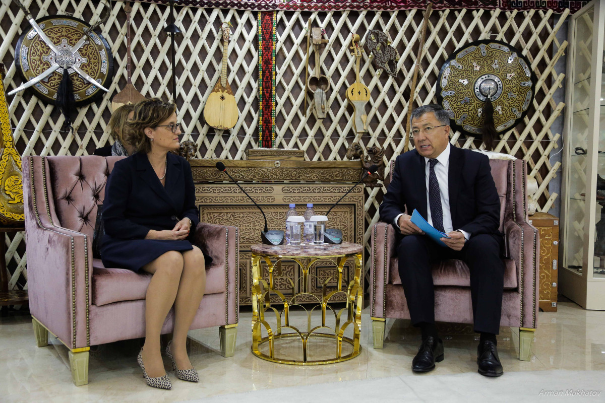 After Emanuela Rossini knew that there are about 120 ethnic minorities living in Kazakhstan, she wanted to know what institution regulates the work of it. In the House of Friendship in Nur-Sultan she met with Zhanseit Tuimebayev, Deputy Chairman of the Assembly of People of Kazakhstan and got acquainted with the work of the organization.