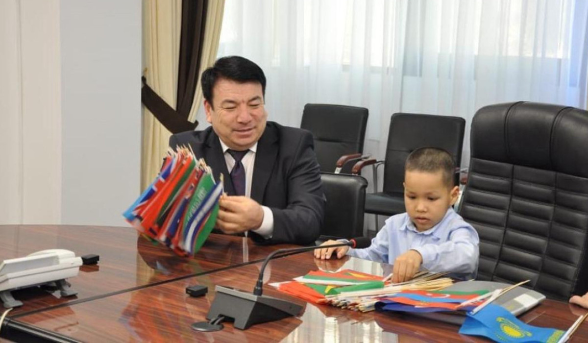 First-grader of one of the schools in Astana Yergen Duisenbek, who knows the flags of 180 countries of the world by heart, visited the Ministry of Education and met with the country's chief teacher Gani Beisembayev. Ergen brought his collection of flags to the meeting and demonstrated his knowledge. He said that he dreams of visiting all these countries, El.kz reports.