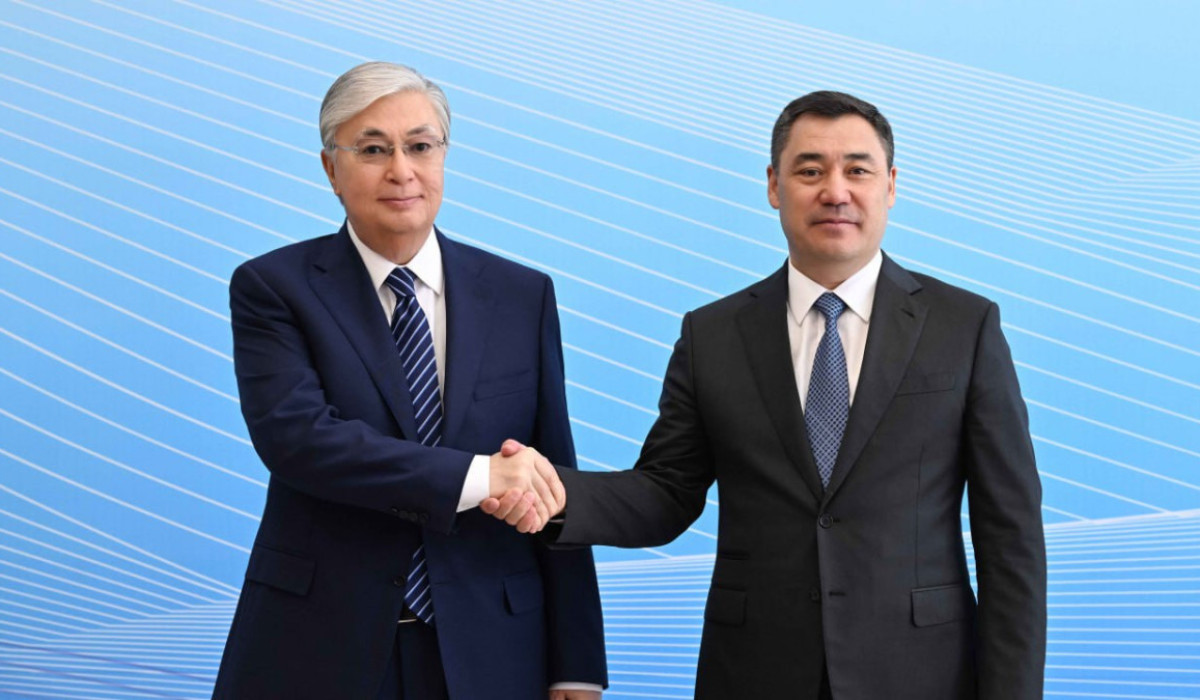 The Kazakh Head of State was greeted by Kyrgyz President Sadyr Japarov.