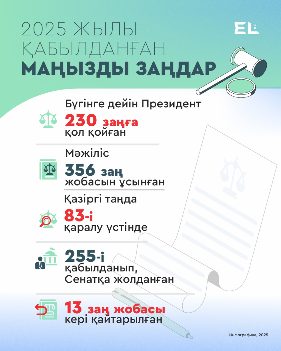 Бұл тек қабылданған заңдардың бір бөлігі ғана. Олардың бәрі елдің қоғамдағы өзекті мәселелерін шешуге бағытталған. Қысқаша айтқанда, 2025 жылы қабылданған заңдар қауіпсіздікті күшейту, әлеуметтік әділеттілікті қамтамасыз ету және құқықтық айқындықты арттыруға қызмет етеді.
