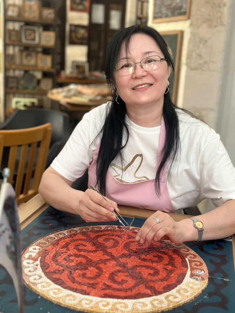 Мозаика – сабырлықты, төзімділікті талап етеді. Егер сүйіспеншілікпен істемесең, шыдай алмайсың. Ал бұл істі сүйсең, әр тасты орнына қоя отырып, ішкі тыныштық табасың, – дейді шебер.