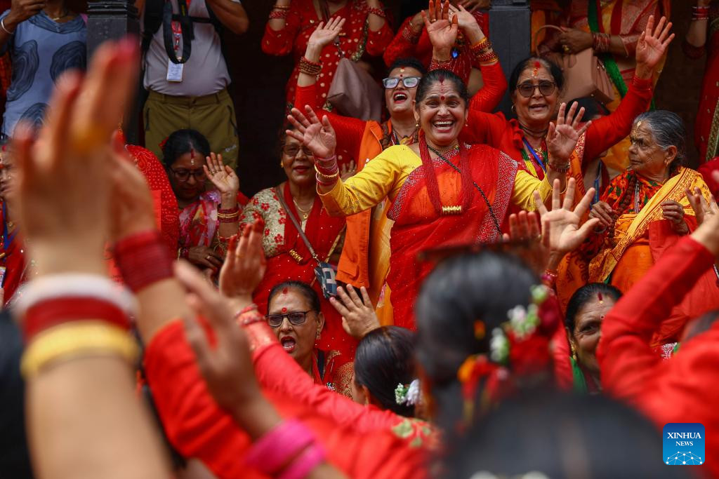 Тидж кезінде непалдық әйелдер дәстүрлі қызыл сари киіп, бірге жиналып, ән айтып, би билеп, ортақ дастарқан басында уақыт өткізеді. Мерекенің діни мазмұны да бар: әйелдер Парвати құдайына дұға жасап, отбасылық амандық, ерлі-зайыптылар арасындағы келісім мен жұбайларының денсаулығын тілейді. Парватидің некесі қасиетті әрі мінсіз одақ ретінде қабылданатындықтан, бұл дәстүр әйелдердің рухани және мәдени дүниетанымында маңызды орын алады.