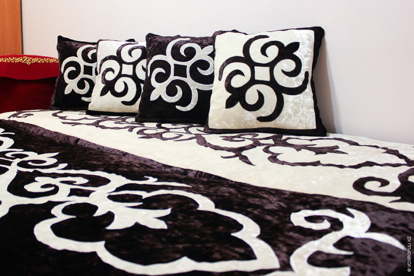 – Біз көбіне үй жабдықтарын тігеміз. Құрақ көрпе, жұмсақ жиһаз жабуы. Дастархан, перде үй текстиліне бағытталған дүниелер шеберханамыздан шығады.