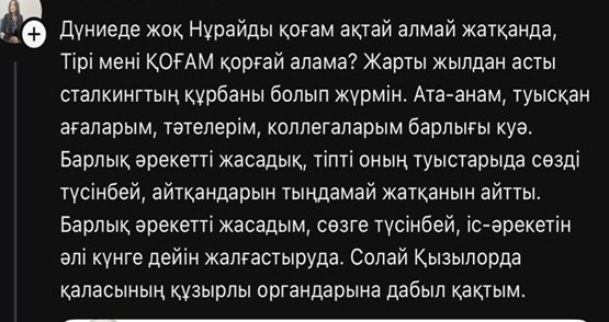 «Тура Нұрайдың оқиғасы менің басымнан өтіп жатыр»