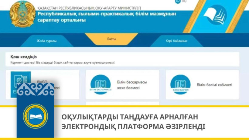 Оқу-ағарту министрлігінің Республикалық ғылыми-практикалық білім мазмұнын сараптау орталығы оқулықтарды таңдау бойынша арнайы платформа әзірледі. Аталмыш платформа педагогтерге пәндік оқулықтарды таңдауға мүмкіндік береді, дееп хабарлайды El.kz ақпарат агенттігі.