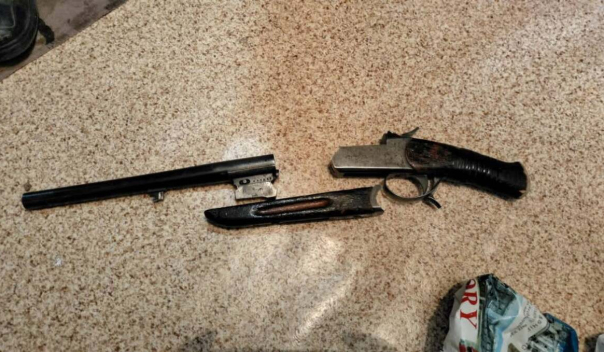 Оның пәтерінен тінту барысында атыс қаруы, атап айтқанда 12 калибрлі ИЖ-К маркалы бір оқпанды мықтықтың кесіндісі табылды. Қару атуға жарамды екендігі анықталды. Ер адамның тіркелмеген қарудың қайдан сатып алынғанын және қандай мақсатта сақтағанын полицейлер анықтап жатыр.