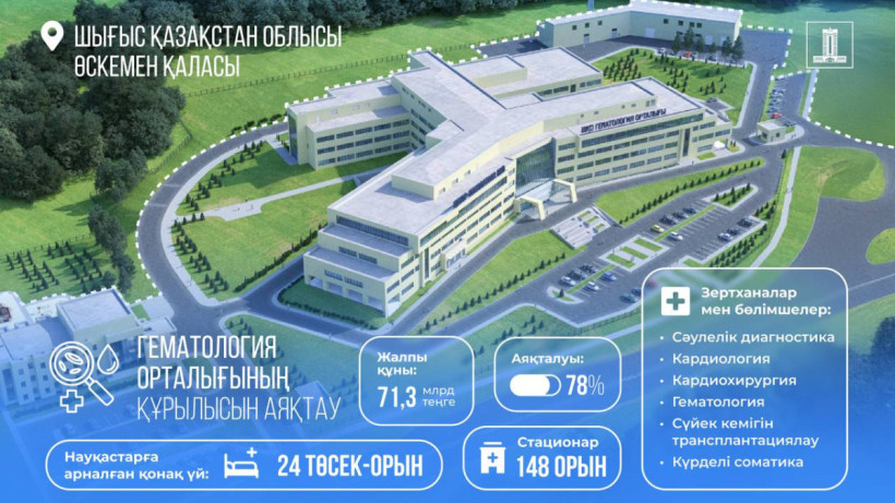 Үкімет мемлекет басшысы Ұлттық құрылтайдың төртінші отырысы барысында алға қойған Өскемендегі Гематология орталығын жеделдетіп пайдалануға беру туралы тапсырмасын жүзеге асыру аясында Арнаулы мемлекеттік қордан 33,6 млрд теңге бөлді, деп хабарлайды El.kz ақпарат агенттігі.