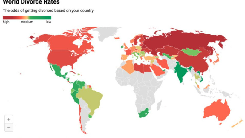 Қазақстан ажырасу бойынша әлемде бесінші орында тұр, деп хабарлайды El.kz ақпарат агенттігі.