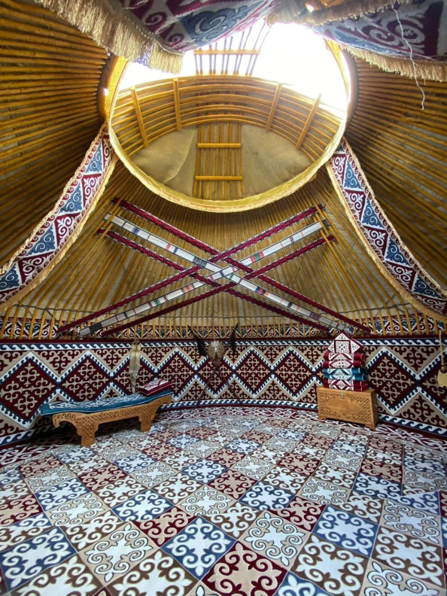Киіз үйдің ішінде де, сыртында да қалқан, найза, ұлттық өрнектер, әуезді саздар және қонақжайлықтың сан ғасырлық дәстүрі тоғысқан.