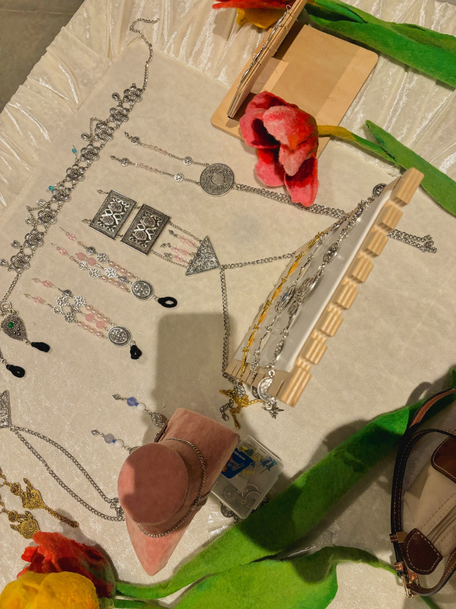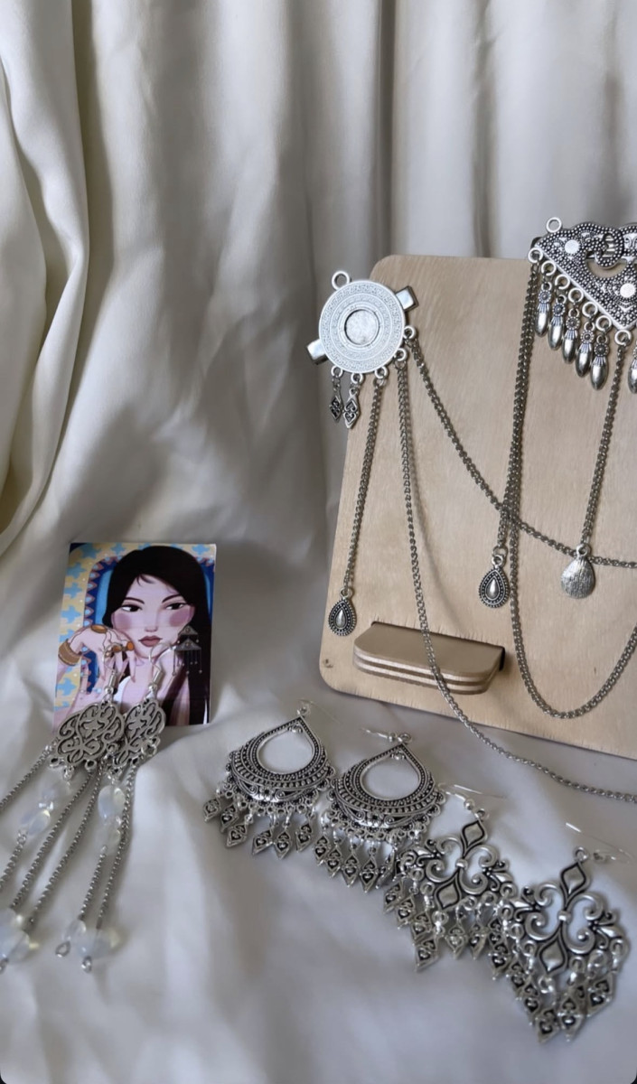 Сондай-ақ жас суретші қыз ұзатуға арналған әшекейлерді де өз қолымен әзірлейді. Шашбау, алқа, шекелік – бүгінде көп сұранысқа ие. Көптеген қыздар арнайы тапсырыспен оның қолынан шыққан бұйымдарды алады.