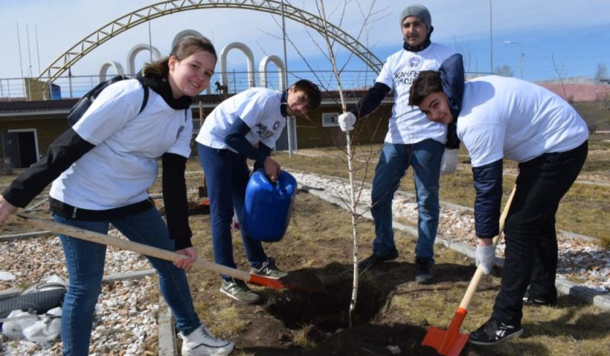 Приняли участие в высадке деревьев и члены молодежного движения «Жаңғыру жолы» Костанайской области – студенты Высшего политехнического колледжа.