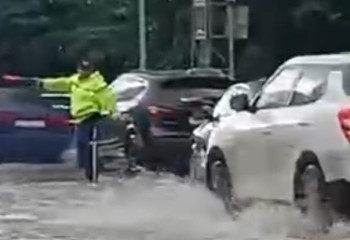 Ливень в Костанае: полицейские по колено в воде работали на улицах