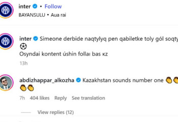 "Интер" в преддверии матча с "Кайратом" опубликовал пост на казахском языке