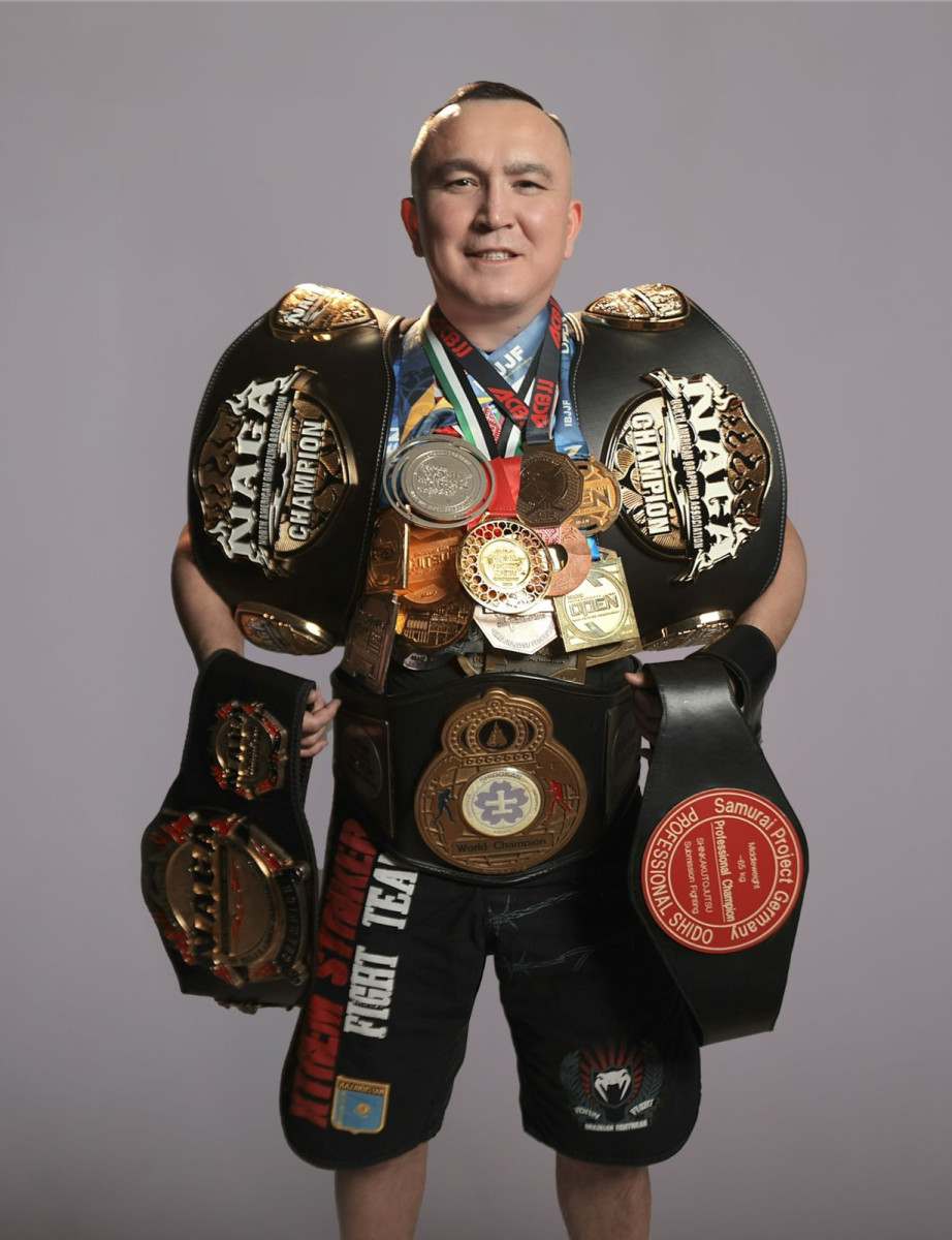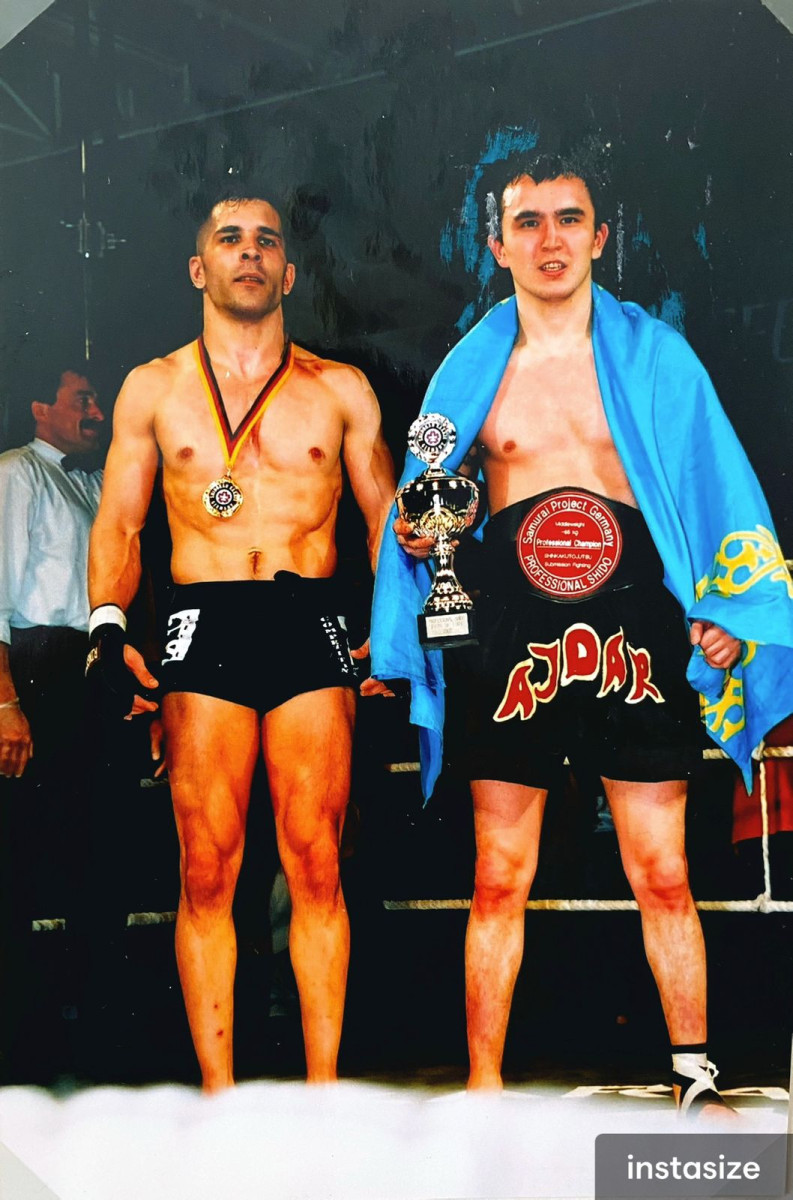 «Я стал чемпионом мира по каратэ-шидокан в Швейцарии, когда учился в магистратуре. А немного позже — первым казахстанцем, завоевавшим пояс чемпиона мира по ММА (SHIDO MMA) в Германии. Мой соперник был американец Брайан Дэвис. Я выиграл в третьем раунде удушающим приёмом, а через год победил его снова — на 50-й секунде первого раунда», — вспоминает он.