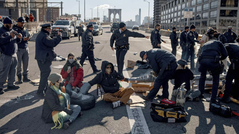 Шеф полиции города Нью-Йорка, Джон Челл, сообщил о задержаниях, отметив, что протестующие перекрыли три моста и тоннель, в том числе Бруклинский мост, Манхэттенский мост, Вильямсбургский мост и Холландский тоннель, передает ИА El.kz.