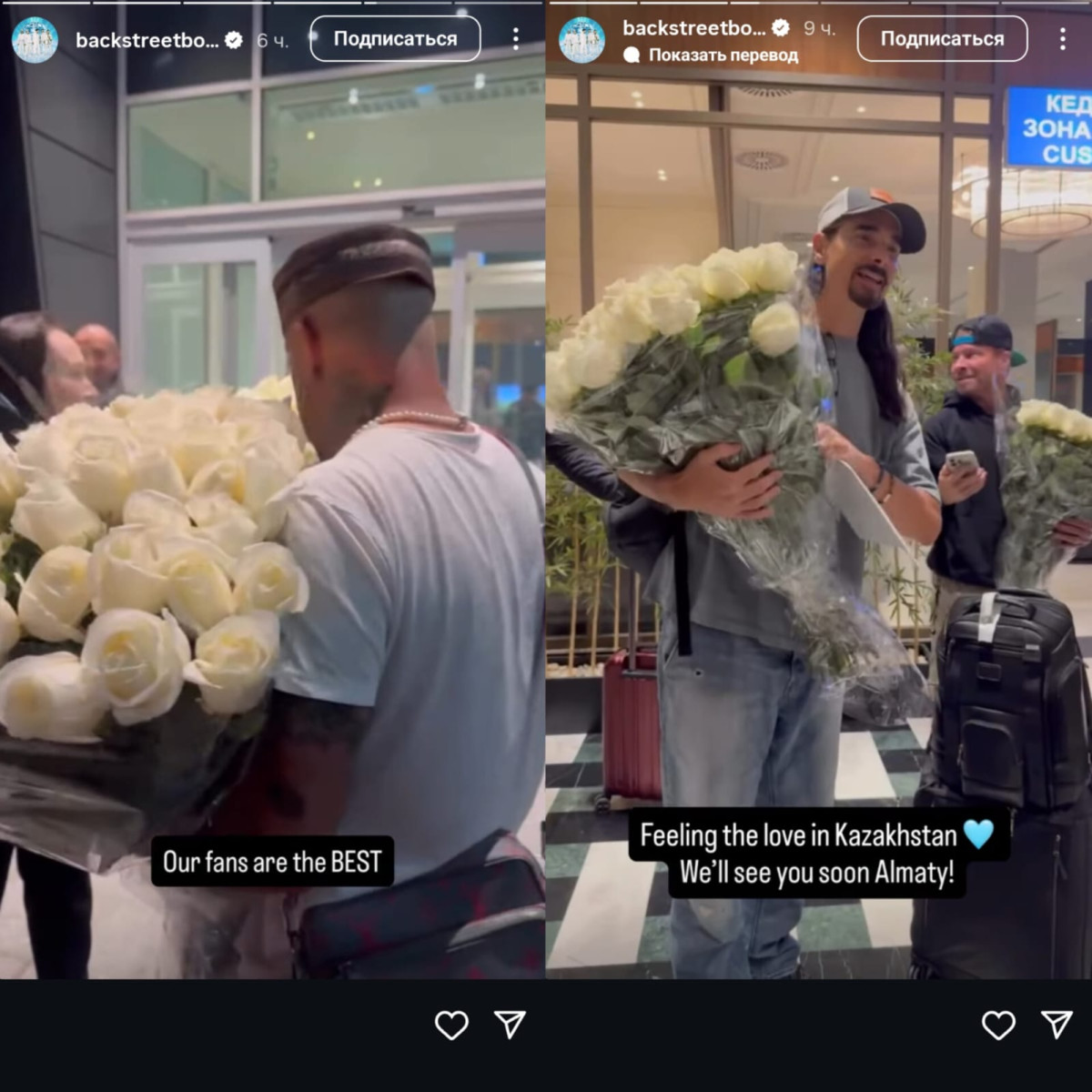 Музыканты уже прилетели в Казахстан и поделились кадрами тёплой встречи. В Instagram они показали, как фанаты встретили их в аэропорту. Артистов приветствовали цветами, национальными тюбетейками и шоколадом.