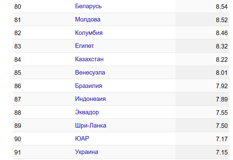 Казахстан в мировом рейтинге