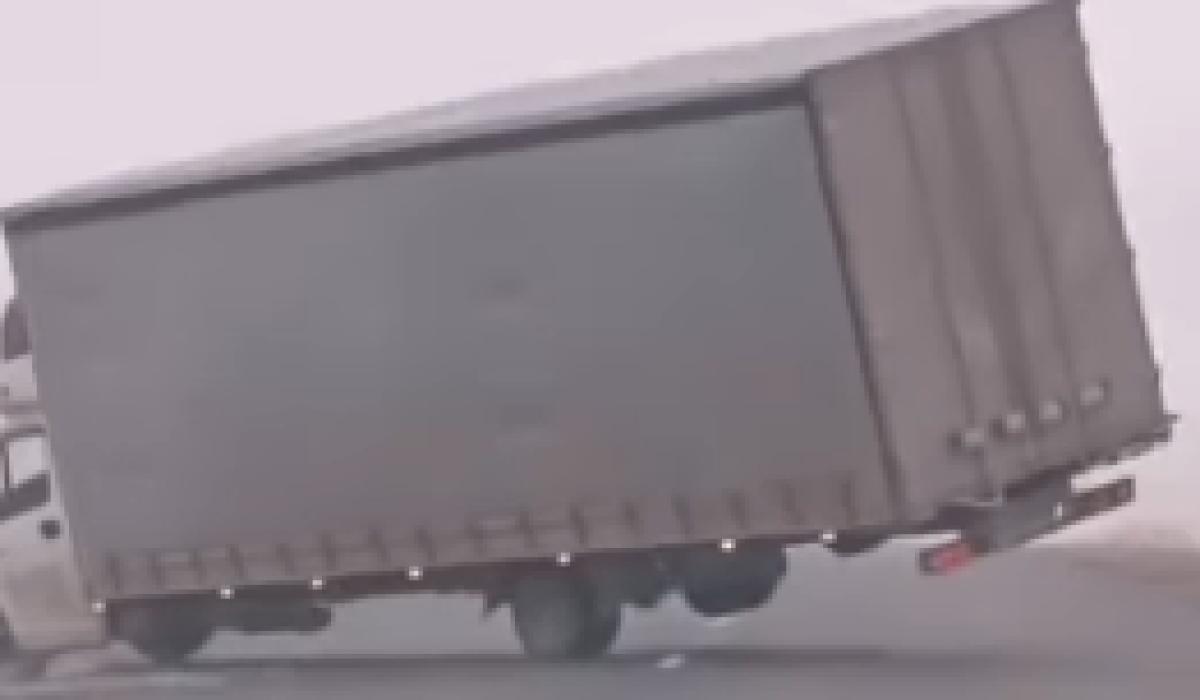 Очевидцы засняли видео, как на трассе Тараз-Шу сильный ветер сумел опрокинуть грузовик, передает ИА El.kz.