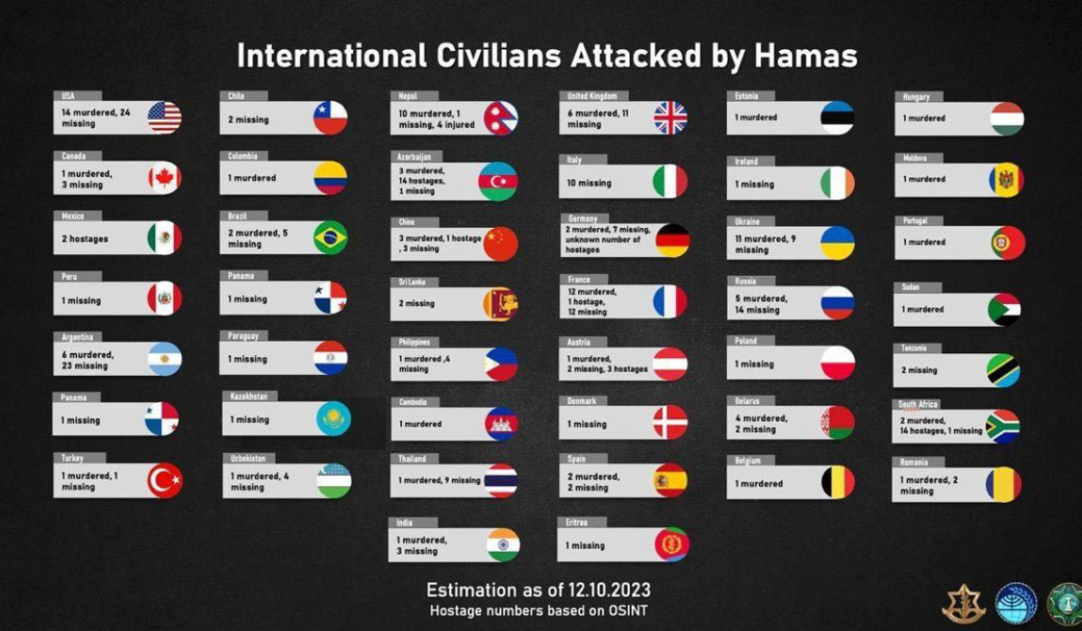 ЦАХАЛ (Армия обороны Израиля) опубликовал список стран, граждан которых либо убили, либо они пропали без вести.