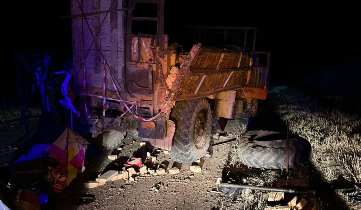 Карету скорой помощи разорвало от удара об грузовик на трассе в Жетысуской области