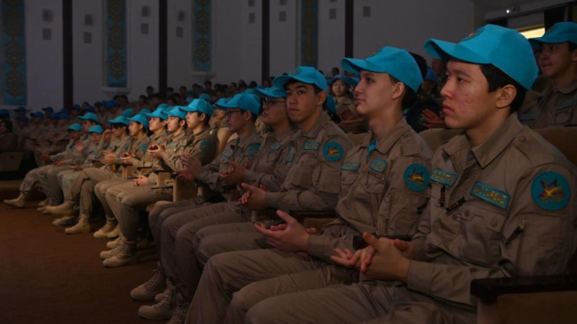 В тот же день в атриуме военного музея прошел «Урок мужества» с участием школьников пятых классов «Жас сарбаз» столичной школы-лицея № 71.