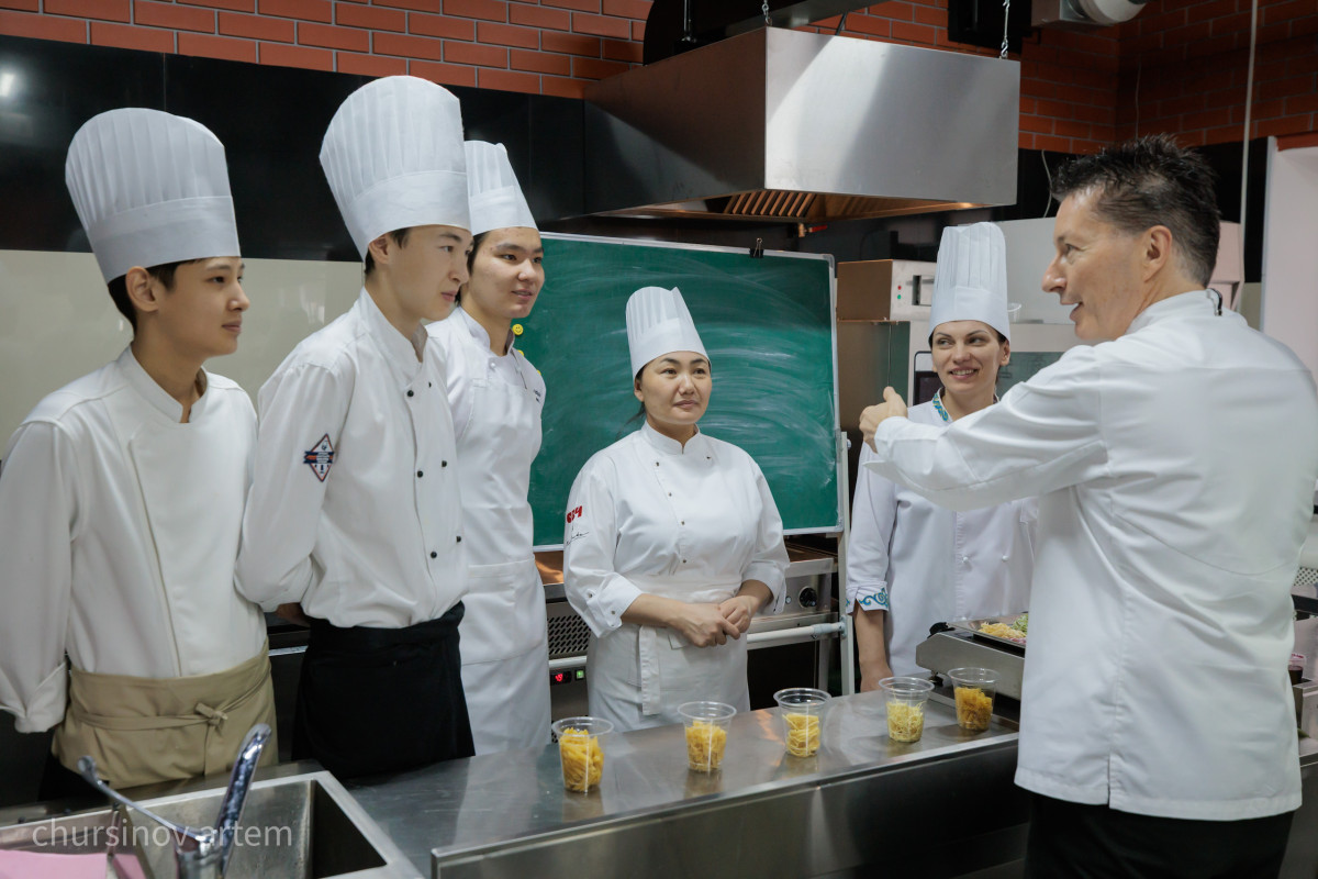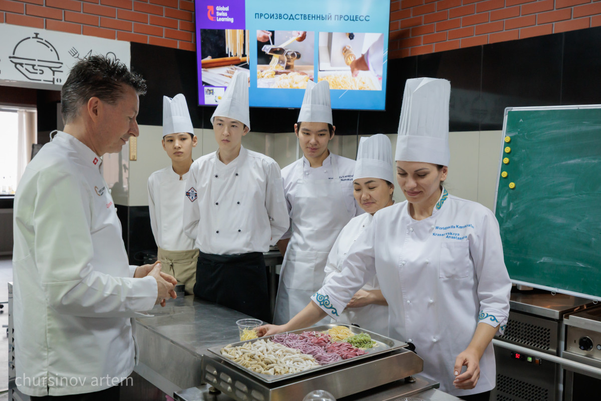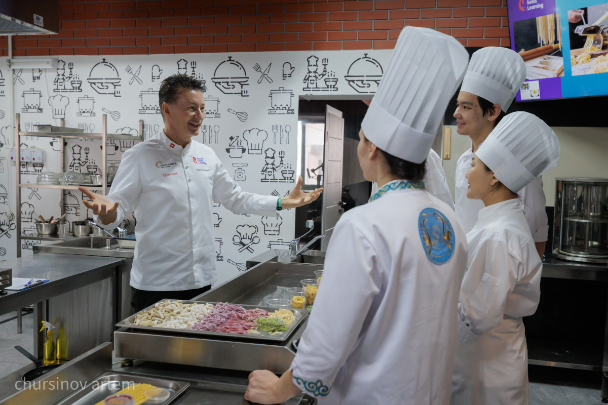 Для него принципиально важно, чтобы система обучения опиралась не только на швейцарские стандарты, но и на местный контекст, на казахстанские продукты, локальное сырье и вкусовую традицию.