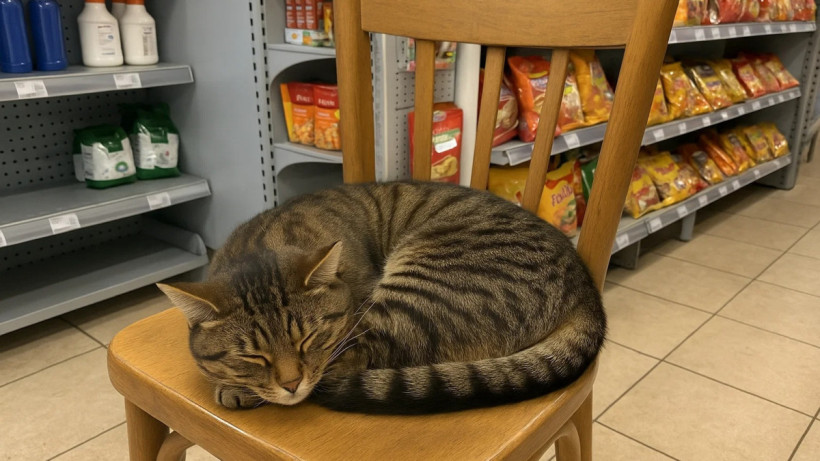 Но история не закончилась только на грусти. Когда взгляд покупательницы снова упал на пустующий стул, она заметила там нового пушистого обитателя – крошечную кошку из приюта.