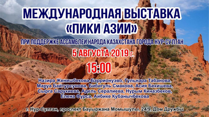 5 августа в 15:00 в столичном Доме дружбы при поддержке Ассамблеи народа Казахстана города Нур-Султан Евразийская Творческая Гильдия (Лондон) проводит Международную выставку «Пики Азии».