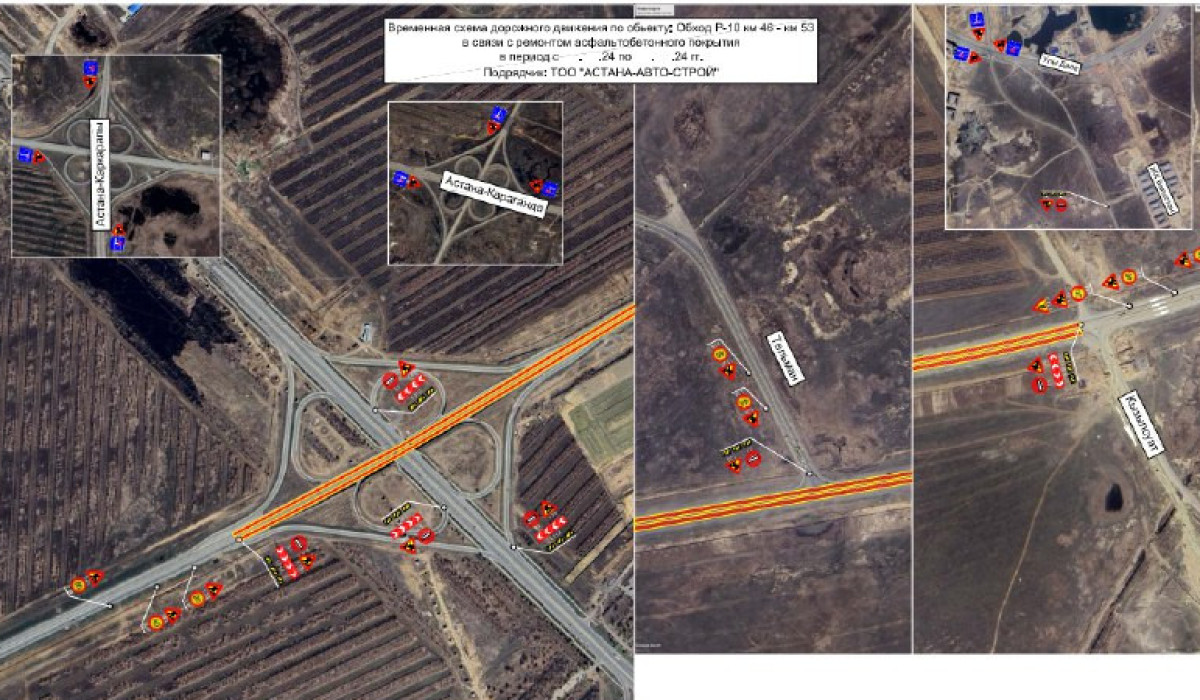 с 25 июня по 28 июня 2024 года на участке автомобильной дороги Р-10 «Обход Астана» км. 46-53 проводится плановый средний ремонт дороги.