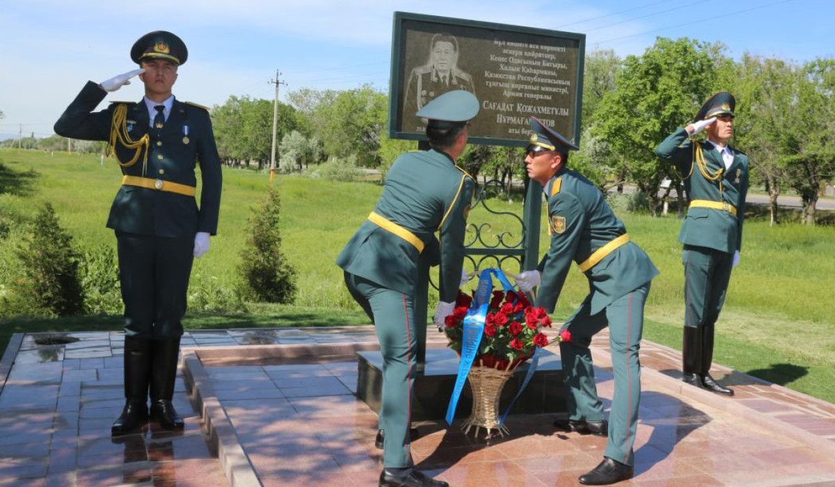 В День защитника Отечества командующий войсками регионального командования «Юг» генерал-майор Куанышбек Уштаев вместе с командирами воинских частей Таразского гарнизона возложил венки к памятной доске первого министра обороны Халық қаһарманы генерала армии Сагадата Нурмагамбетова, передает ИА El.kz со ссылкой на Министерство обороны.