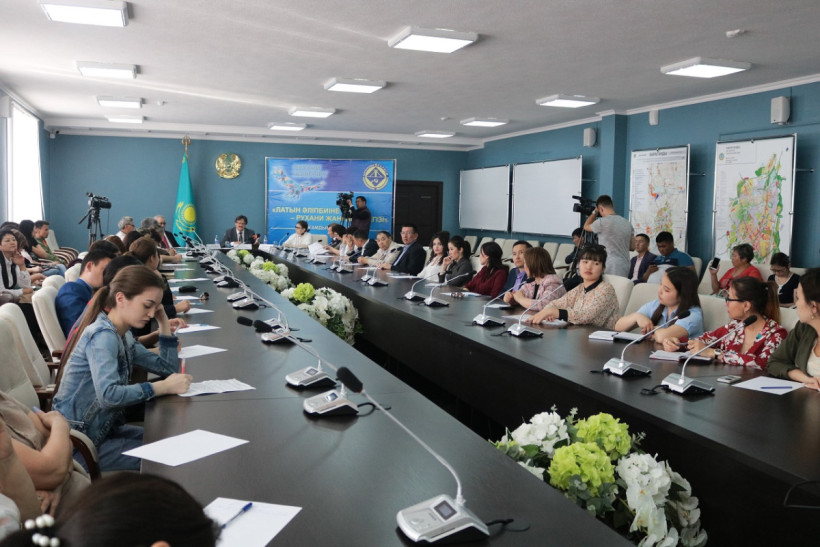 Управлением по развитию языков Карагандинской области 19 июня в Доме дружбы прошел семинар «Латын әліпбиіне көшу – рухани жаңғыру негізі»  по переходу казахского языка на латинскую графику в рамках программы «Рухани жаңғыру».