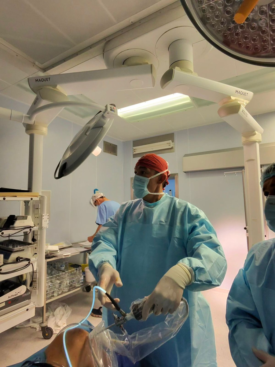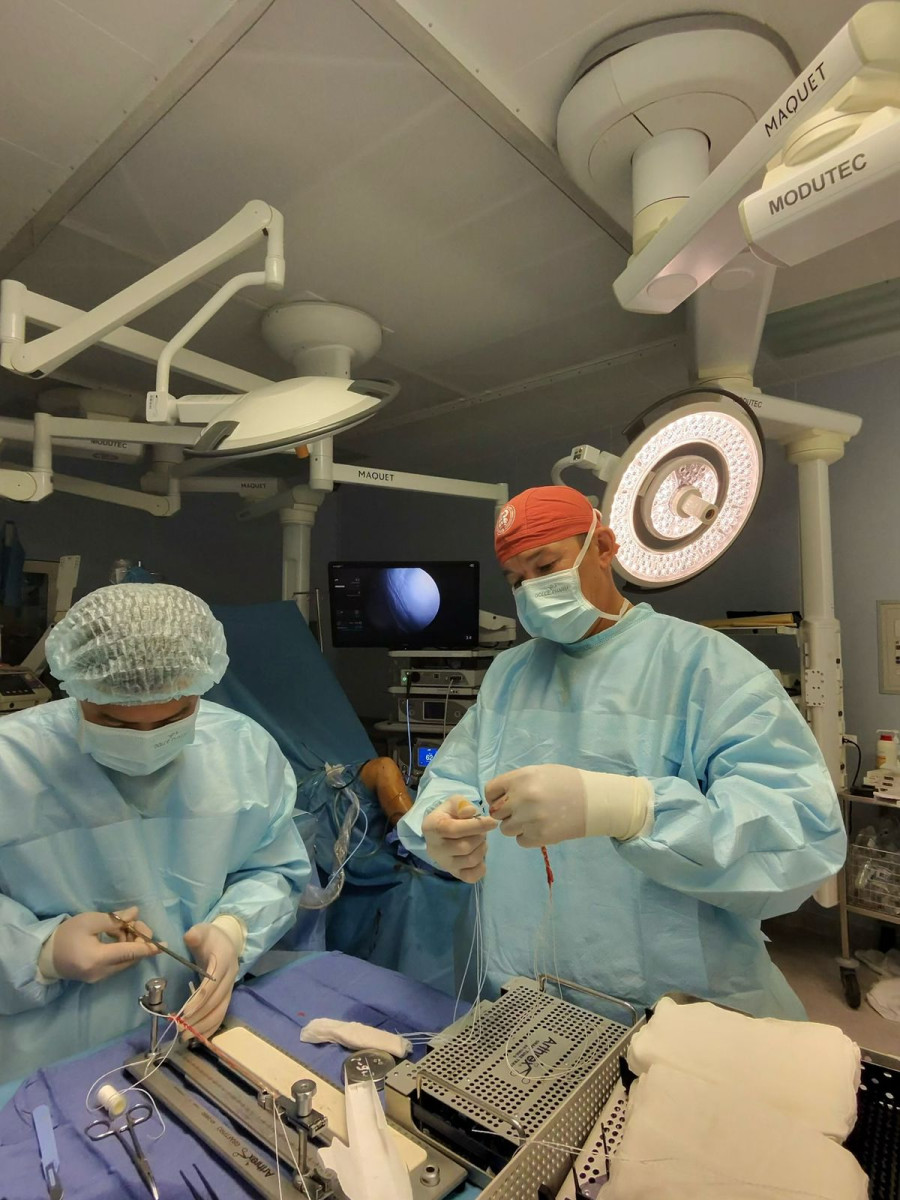 - В нашем Центре спортивной медицины МЦ УДП РК выполняется полный комплекс операций при патологии коленного и плечевого суставов. Некоторые технологии мы можем с уверенностью сказать, что выполняются только в нашем центре и были впервые в внедрены в Казахстане у нас. Мы проводим в том числе уникальные и сложные вмешательства, такие как артроскопическая методика Латарже (Latarjet), которая применяется при нестабильности плечевого сустава, в том числе при костных дефектах и проблемах короакромиального отростка плечевой кости. Также выполняется трансфер широчайшей мышцы спины (latissimus dorsi), который используется при необратимых разрывах вращательной манжеты плечевого сустава.