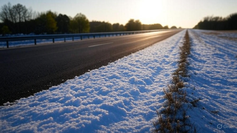 Очевидцы поделились видео в социальных сетях, на котором видно, что обочины трассы «Астана–Кокшетау» покрыты снежным покровом.