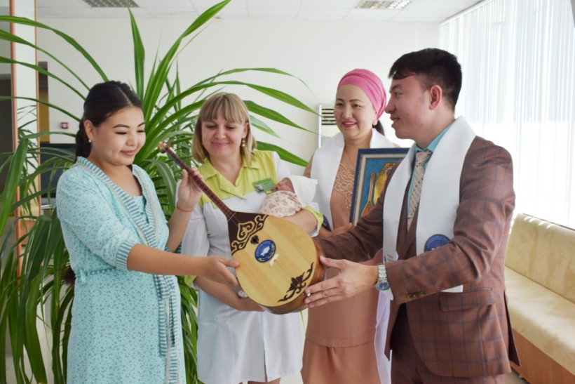 В этом году подарок получила девочка, родившаяся в Национальный день домбры. Мама малышки, 22-летняя Кунсулу Жиеншиева рассказала, что очень хотела родить именно в этот день.