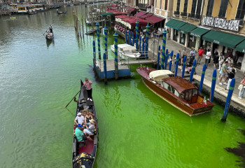 Вода Гранд-канала в Венеции окрасилась в зеленый цвет