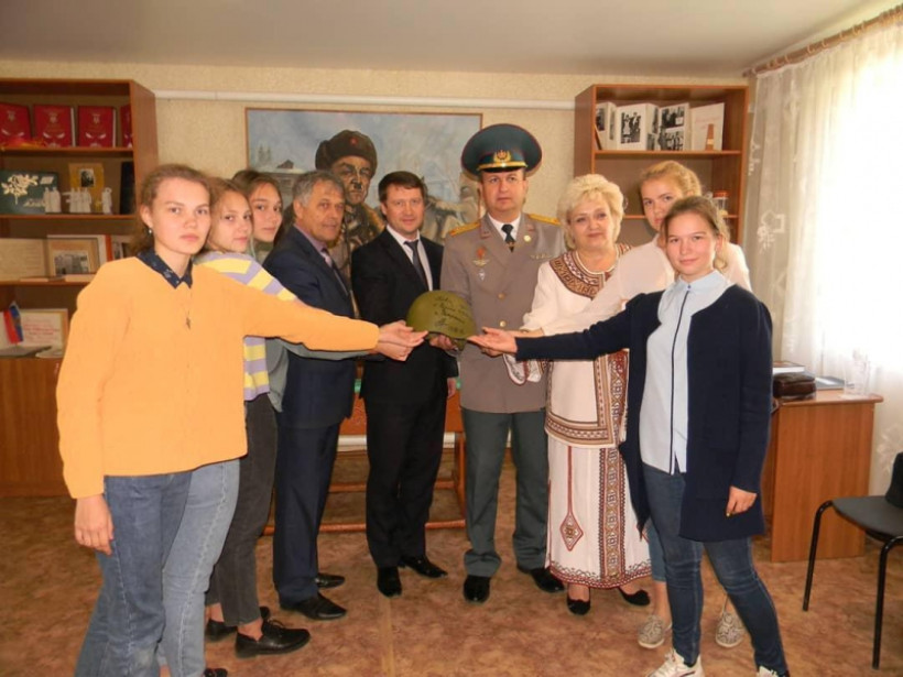 На память о встрече в доме-музее И.В. Панфилова останутся книги, подаренные гостями, а сами они увезут в Павлодар каску с приветственными подписями, которые от имени всех петровчан оставили на ней Николай Ларин и Александр Медведев.